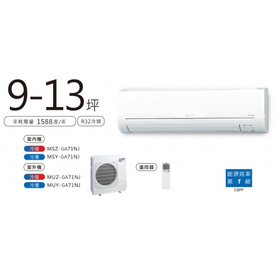7.1KW 適用9~13坪 MSY/MUY-GA71NJ 靜音大師GA系列變頻冷專